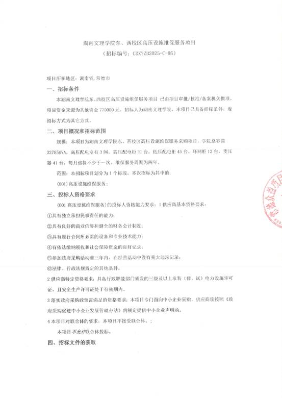 东、西校区高压设施维保服务项目竞争性磋商公告