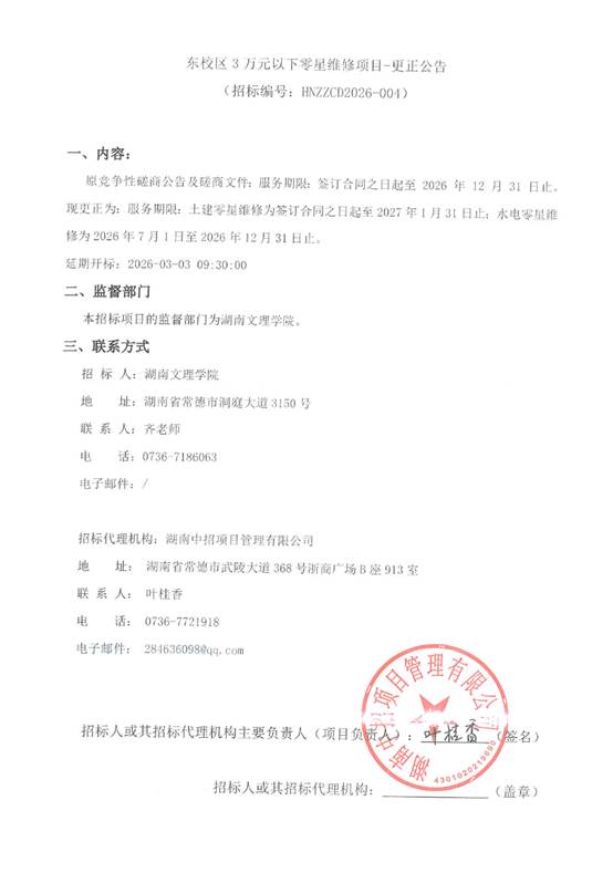 东校区3万元以下零星维修项目-更正公告